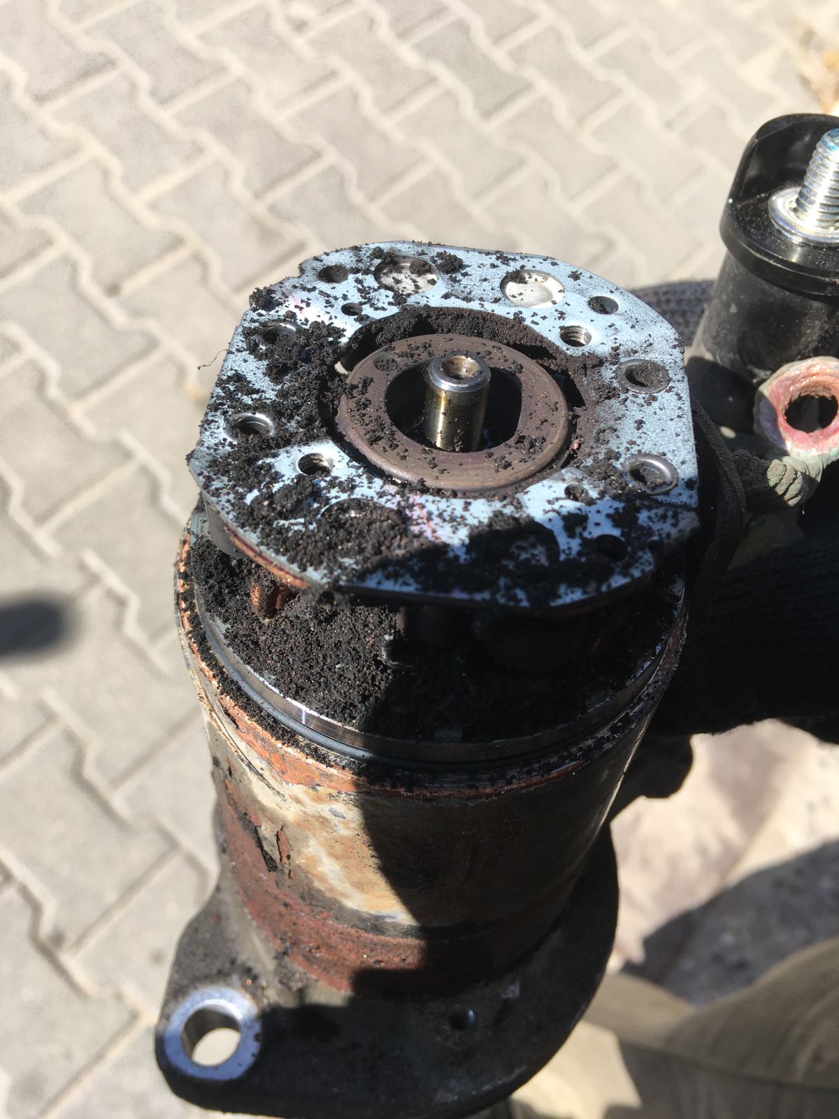 At a specialized service center, the starter was cleaned, the bendix replaced and lubricated. As a preventative measure, the generator was overhauled due to occasional clicking noises when starting cold; a bearing was replaced.