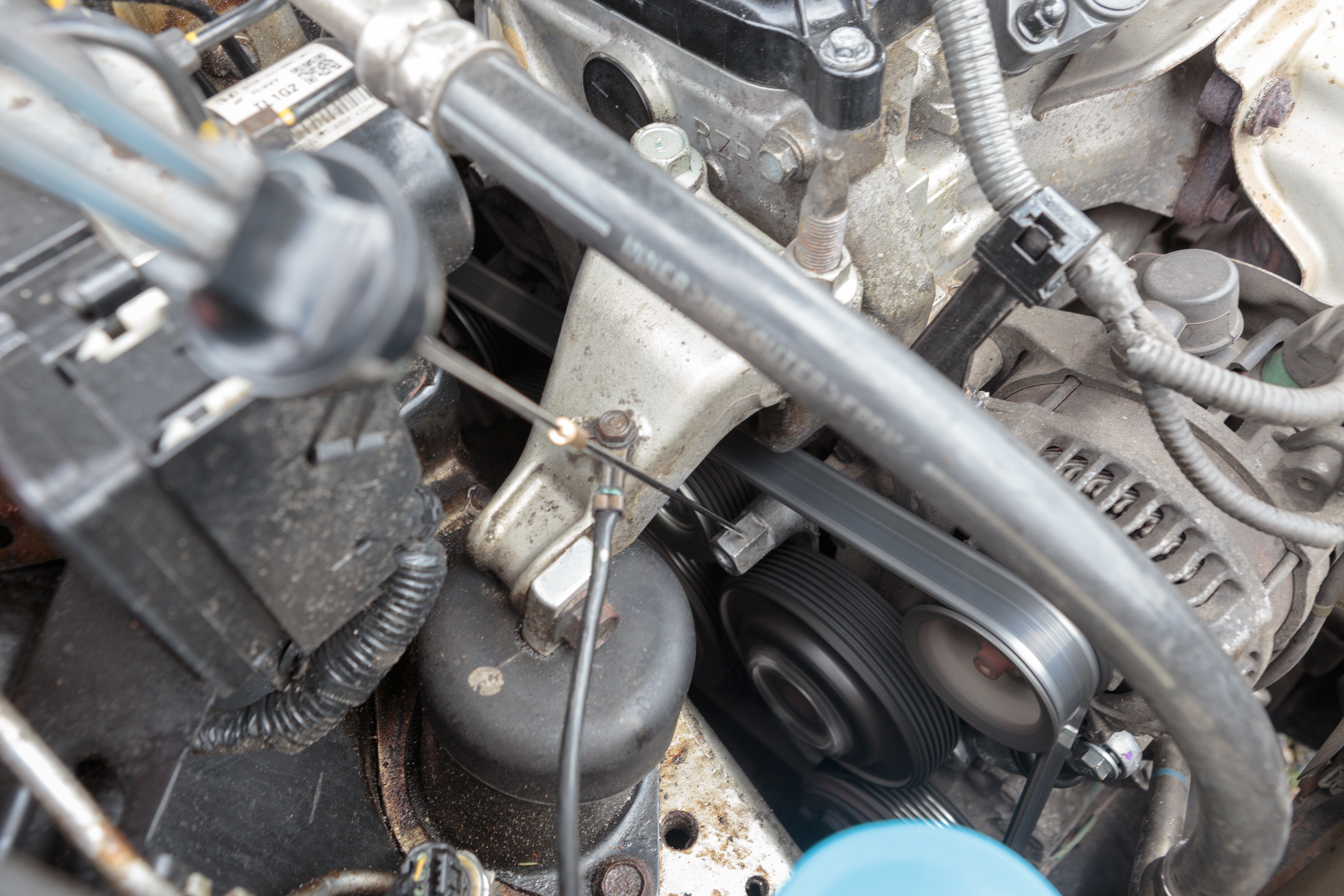 During a routine inspection, unusual sounds were detected near the drive pulley. After evaluation, it was decided to replace the tensioner pulley.