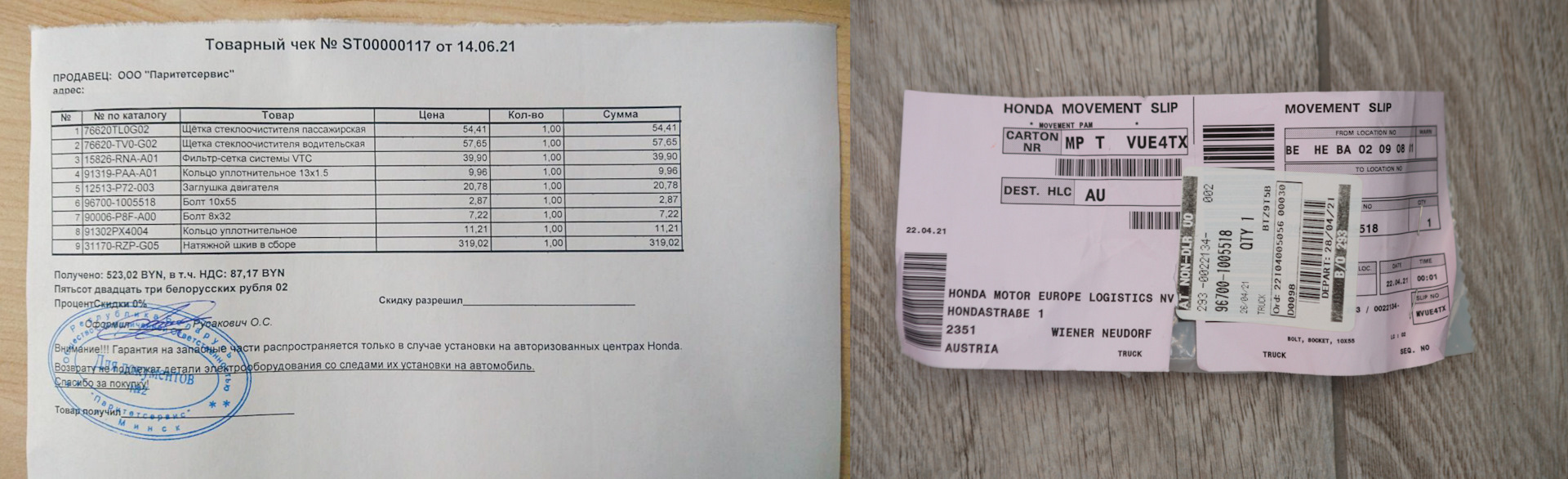 Parts were ordered from an official dealer.