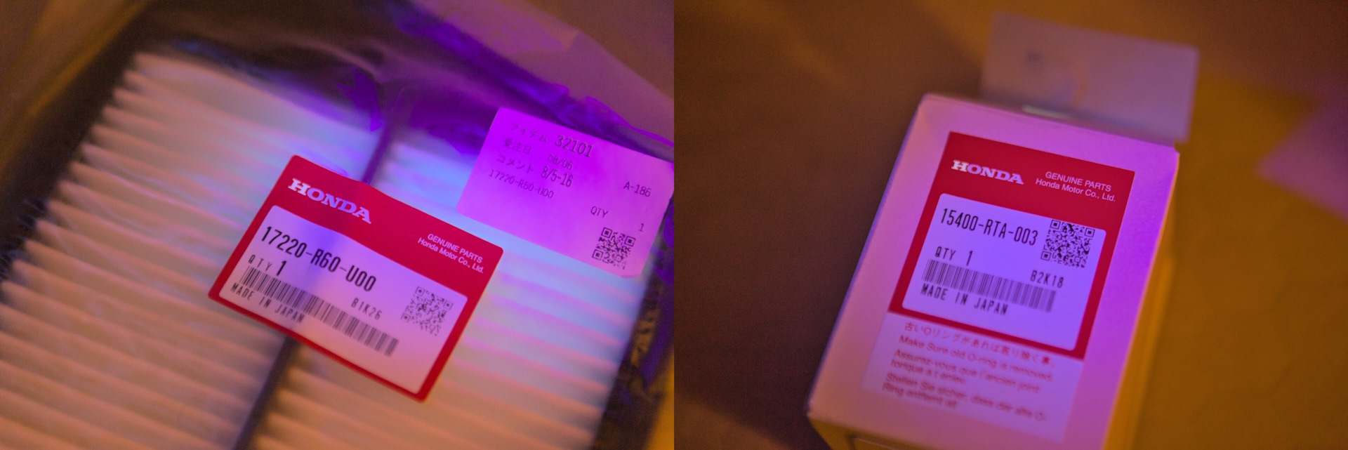 - Engine oil filter / Honda 15400RTA003 / 13.35 USD