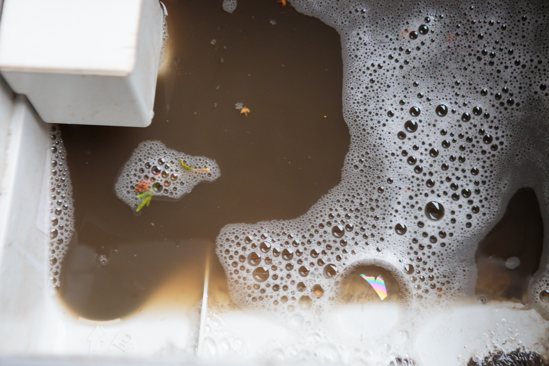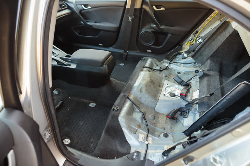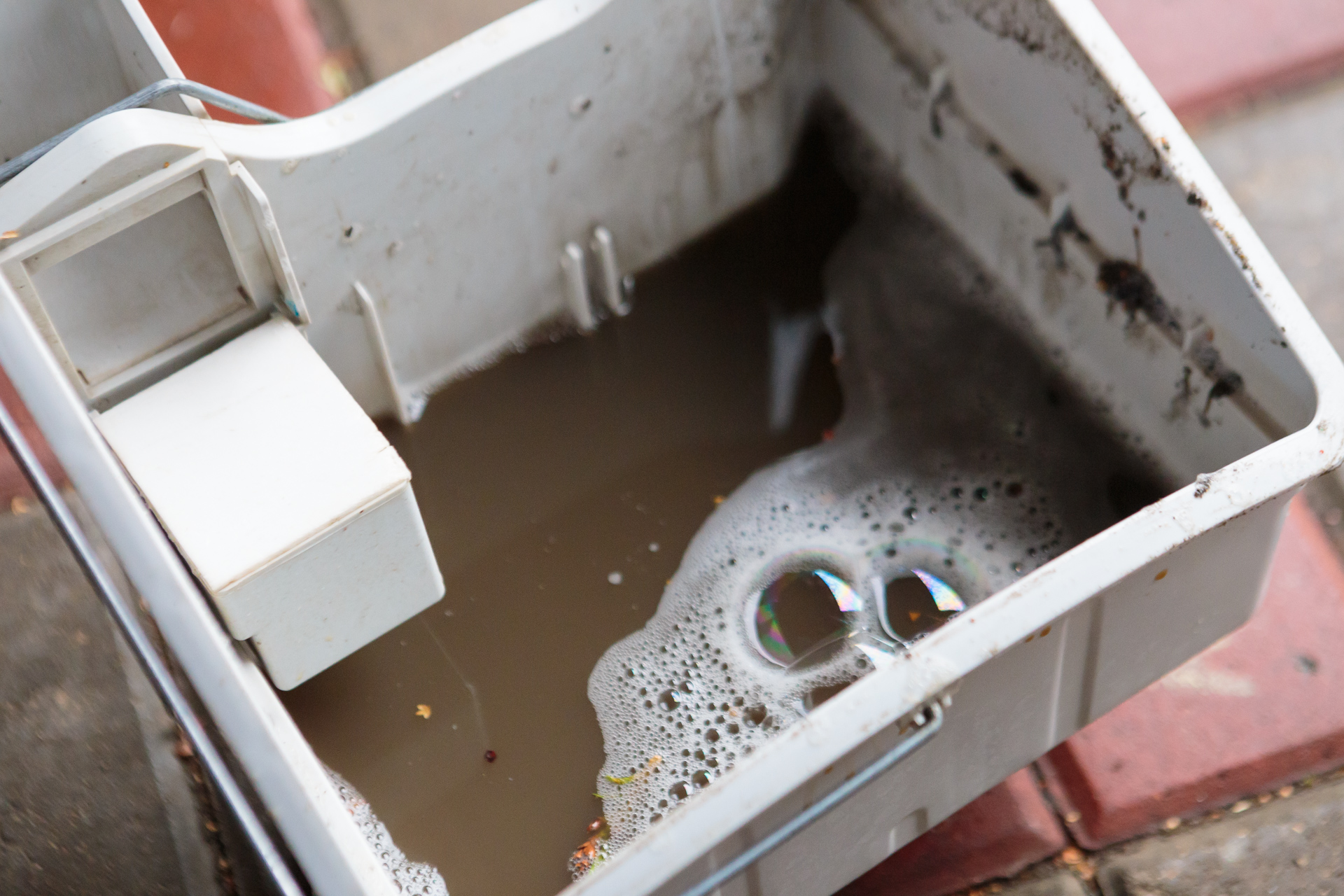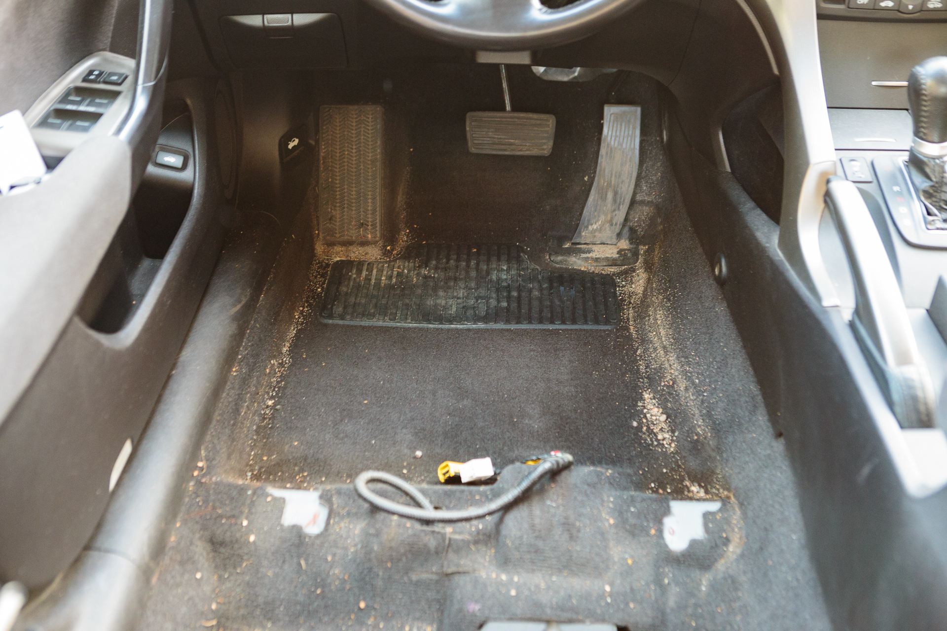 After cleaning the front seats, the water was slightly muddy. In contrast, it seems the rear row had hardly ever been cleaned.